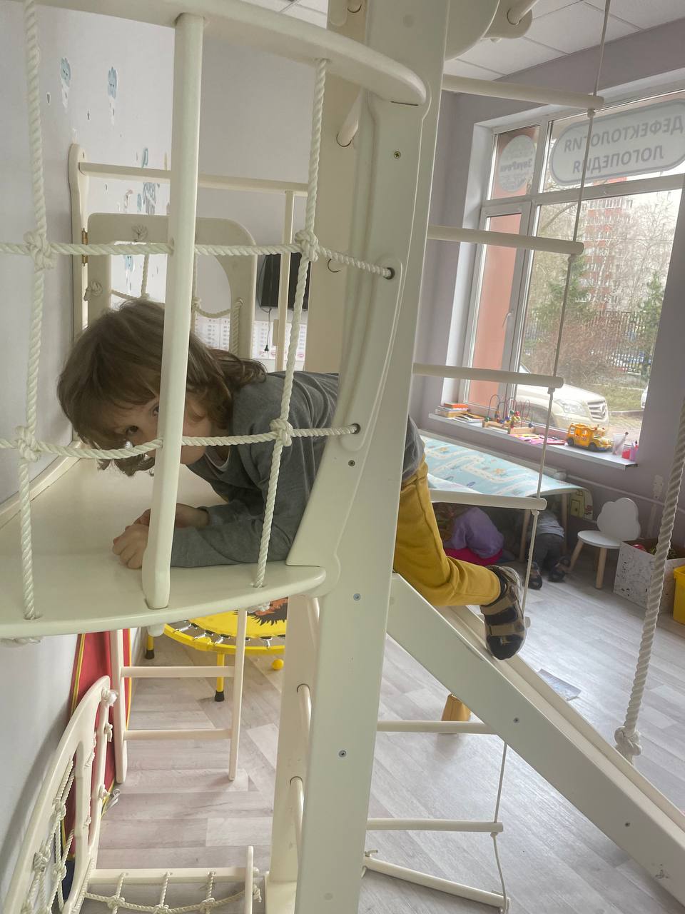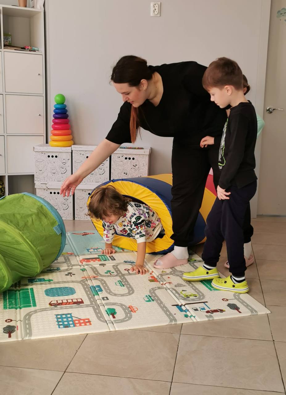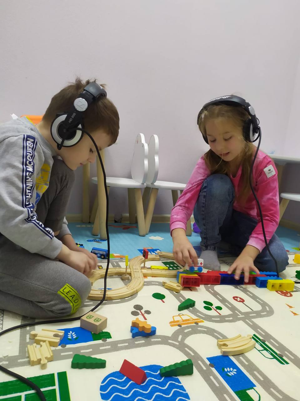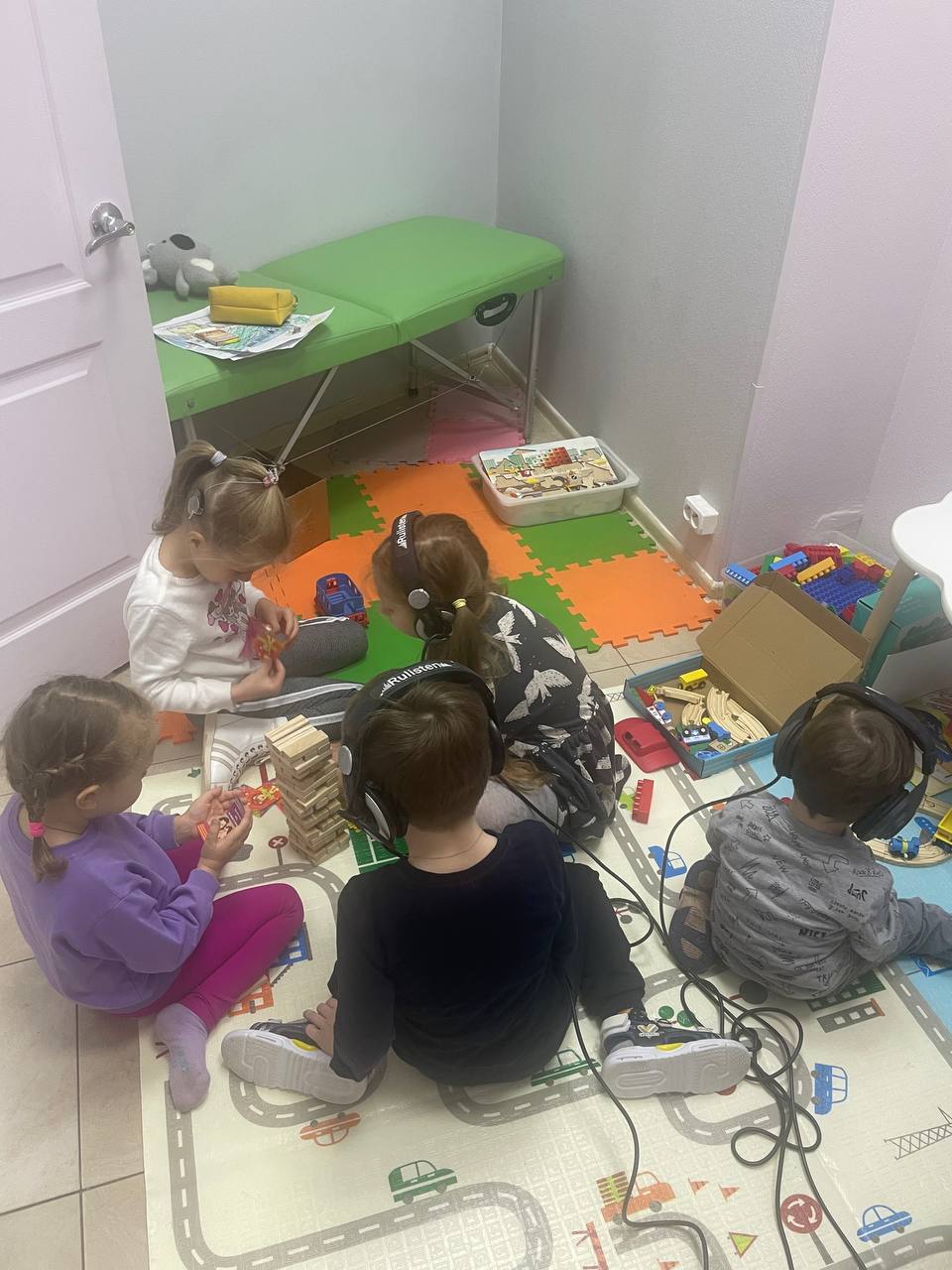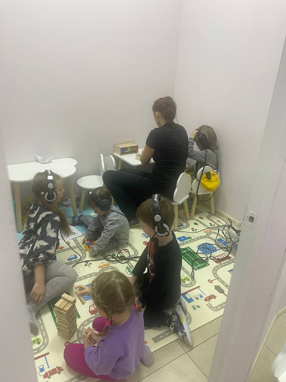 Команда педагогов ведет четырех часовое занятие, состоящее из: двух часов слуховых тренировок по методу Альфреда Томатиса, часа занятий на сенсорную интеграцию со специальным оборудованием, 30 минут каждый ребенок индивидуально занимается по своей программе с логопедом. Также мы находим время на совместное чаепитие, которое помогает учиться общению и другим социально-бытовым навыкам.